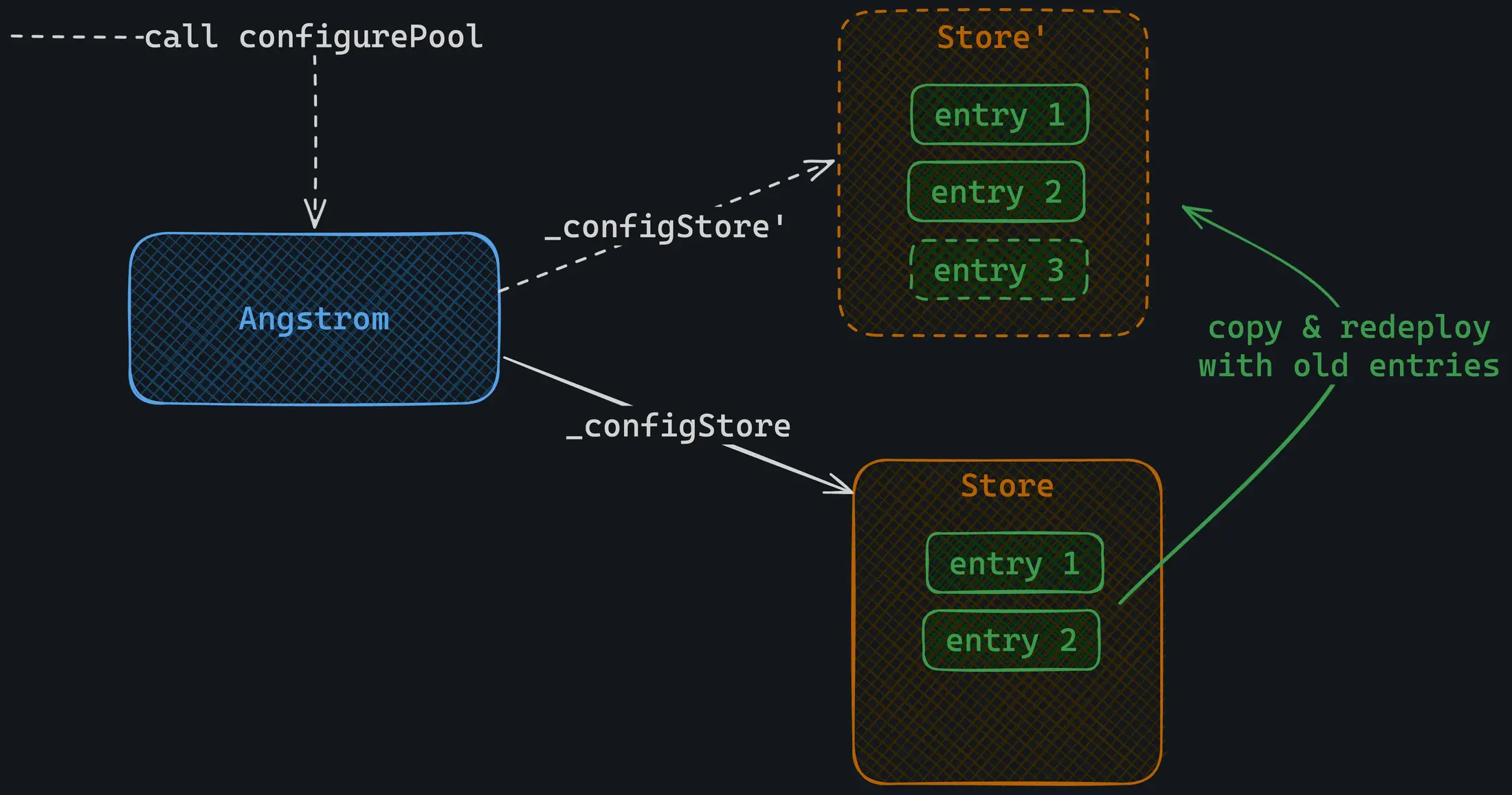 the Angstrom contract maintains the Pool Config Store. To save gas on batched reads the "code as